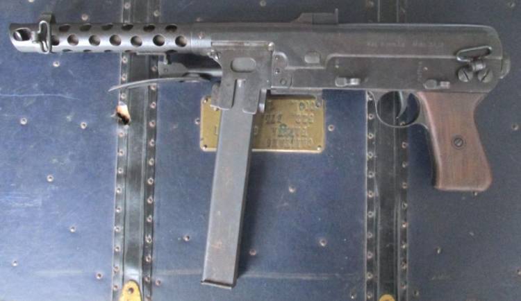RARA P.M. DELLA RSI. COSTRUITA DALLA FINE DEL 1943 IN CIRCA 6.000 ESEMPLARI. CONDIZIONI PERFETTE. SCARRELLANTE. SERBATOIO AMOVIBILE.
