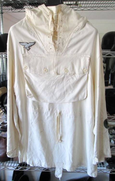 ECCEZIONALE ANORAK IN COTONE BIANCO DELLA HERMANN GOERING DA ALPINO/SCIATORE CON AQUILA DA UFFICIALE E RARO DISTINTIVO DA FRANCO TIRATORE (3^ Classe). CONDIZIONI PARI AL NUOVO.