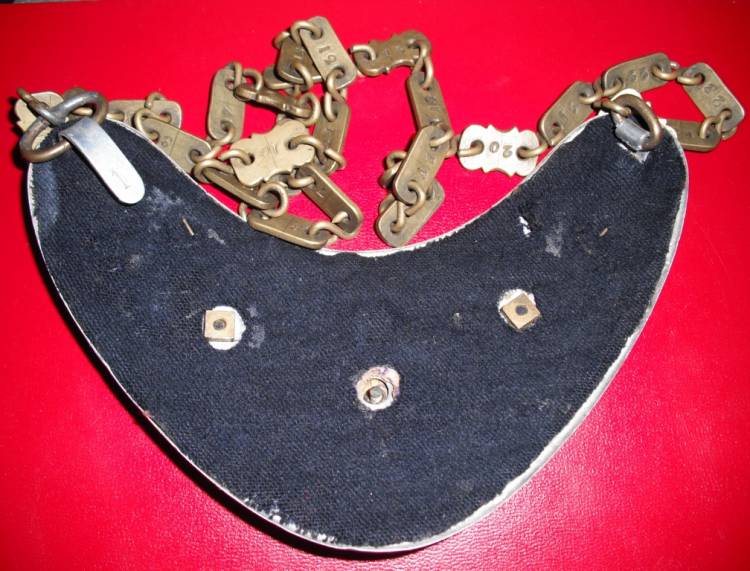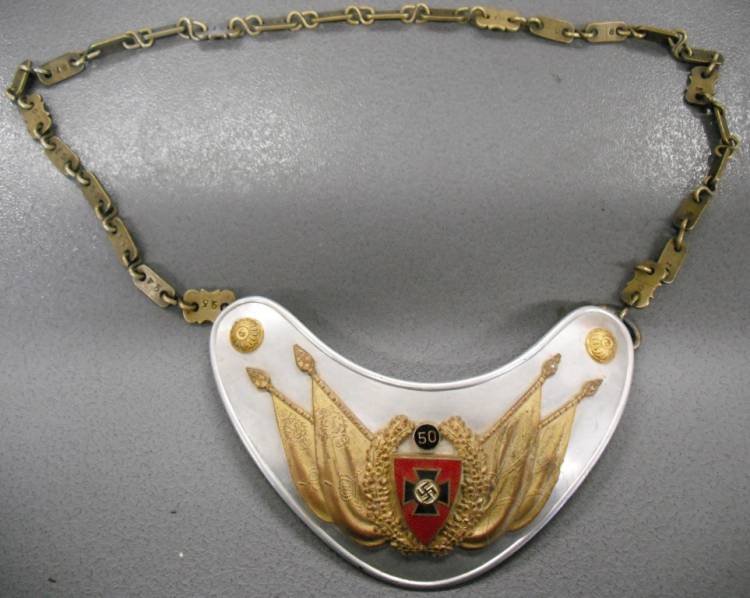 GORGERA DA COLLO PER ALFIERE PORTA BANDIERA DELLA DKB (LEGA DEGLI EX-COMBATTENTI TEDESCHI DELLA GUERRA 1915/18). IN ARGENTONE CON SMALTI E FELTRO SUL RETRO. CATENA IN OTTONE, NUMERATA SU OGNI SINGOLA MAGLIA DA 0 A 25. MARCATA "1" SUL GANCIO DI ATTACCO SUL RETRO. ORIGINALE E IN OTTIME CONDIZIONI.