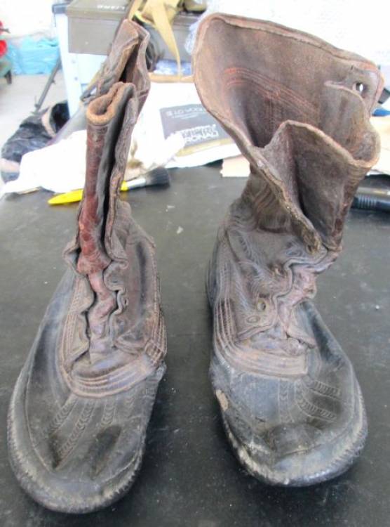 IN CUOIO MARRONE E GOMMA. CONDIZIONI MEDIE. MARCATE ´GOODRICH HI-PRESS MADE IN CANADA´.
