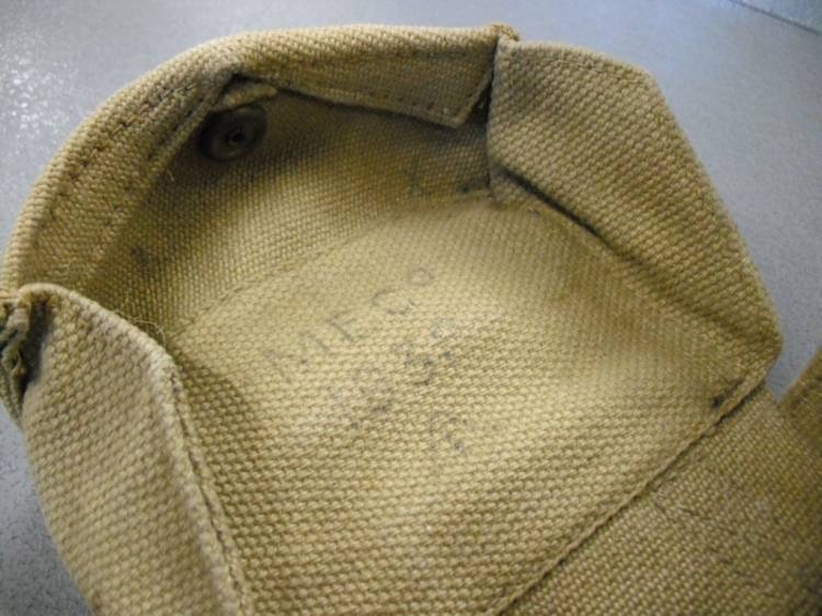 IN TELA CACHI, CHIUSURA CON BOTTONE AUTOMATICO METALLICO. DATA DI FABBRICAZIONE E TIMBRI ACCETTAZIONE COMMISSARIATO STAMPATI ALL´INTERNO. ORIGINALE BELLICA. CONDIZIONI PARI AL NUOVO.