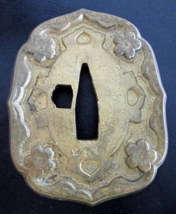 Naga-Maru-Gata. In ottone/bronzo. Tsuba regolamentare per Gunto da Ufficiale II GM.