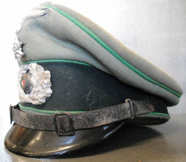 PER SOTTUFFICIALE. WAFFENFARBEN VERDE CHIARO - TRUPPE DA MONTAGNA (GEBIRSGJAGER). FREGI ED EDELWEISS IN METALLO STAMPATO E ARGENTATO CON BELLA PATINA D´EPOCA. NESSUN SEGNO DI MANOMISSIONE. INTERNO PRIVO DI ROMBO IN CELLULOIDE, NOME DEL SOTTUFFICIALE SCRITTO SULL´ALLUDA. PORTATO E CON DIVERSI PICCOLI BUCHI DA TARMA. PEZZO VISSUTO E MOLTO AFFASCINANTE. ORIGINALE.