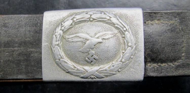 CINTURONE LW CON FIBBIA IN ALLUMINIO E CUOIO MARCATO LW DEL 1939. CONDIZIONI DISCRETE.