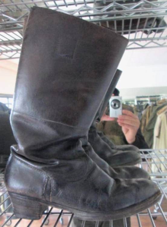RARISSIMI STIVALI DEL CORPO FEMMINILE DA TRUPPA IN CUOI NERO. USATI PER LA WH E LA SS.
