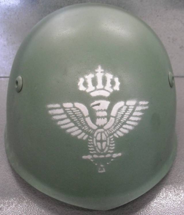 GUSCIO ORIGINALE BELLICO. VERNICE GRIGIO-VERDE NON ORIGINALE. FREGIO ARGENTO, AQUILA "STATO MAGGIORE REGIO ESERCITO" VERNICIATO A MASCHERINA, NON ORIGINALE.