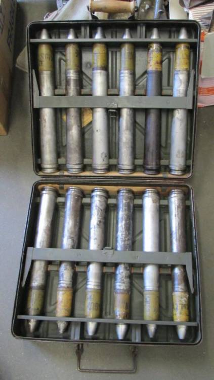 BELLA CASSETTA PORTAPROIETTILI PER PAK.36 IN CAL. 3,7 cm. COMPLETA DEI 12 PROIETTILI.