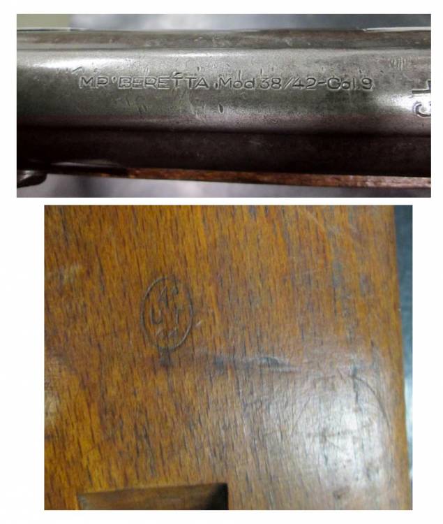 MAB 38/42 PRODOTTO PER L´ESERCITO TEDESCO COME DA RULLATA SUL RICEVITORE ´MP BERETTA MOD.38/42- CAL.9´ E DAL PUNZONE SUL CALCIO DEL ´4°UT-44´.