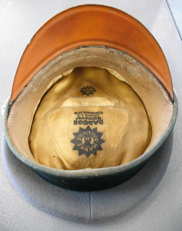 PER UFFICIALE HEER (ESERCITO). WAFFENFARBEN VERDE SCURO- AMMINISTRAZIONE. AQUILA IN ALLUMINIO STAMPATO, COCCARDA CON COLORI NAZIONALI CON FOGLIE DI QUERCIA RICAMATE IN CANOTTIGLIA ARGENTO. QUALCHE TARMATURA SUL PIATTO. INTERNO CON ROMBO IN CELLULOIDE PARZIALMENTE MANCANTE CON NOME E LOGO DEL PRODUTTORE "DALLUGE HANNOVER", TARGHETTA NOMINATIVA DELL´ UFFICIALE. ALLUDA BEN INTEGRA E CON SEGNI DI PORTO. CONDIZIONI MOLTO BUONE.