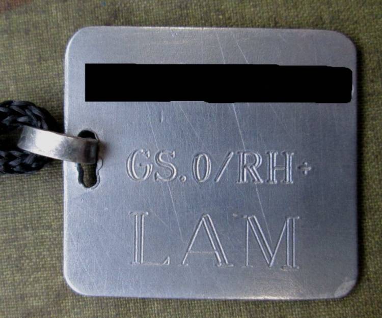 PIASTRINA NOMINATIVA IN ALLUMINIO CON GRUPPO SANGUIGNO DEL LEGIONARIO L.A.M. _________.