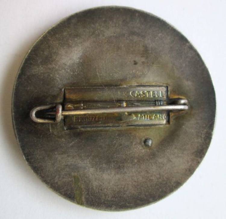 Medaglione per fazzoletto dell´Opera Balilla della fine degli ´20. Immagine di Mussolini sul dritto con il motto ´SE AVANZO SEGUITEMI - OPERA BALILLA´. La placchetta sul rovescio ha il marchio del fabbricante (F.M.LORIOLI & CASTELLI - V. Bronzetti 25 Milano).