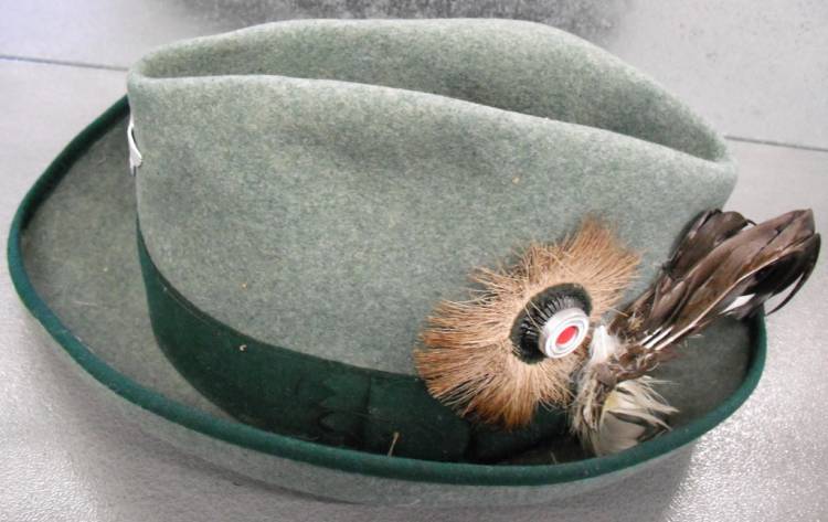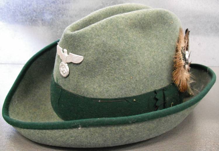 DFO CAPPELLO PER MEMBRO DEL DEUTSCHE FALKEN ORDEN (ORDINE TEDESCO DELLA FALCONERIA) SEZIONE DEL DEUTSCHE JAGERSCHAFT(ASSOCIAZIONE TEDESCA DELLA CACCIA) CHE A SUA VOLTA ERA PARTE DEL GEMEINDE FORST DIENST (SERVIZIO FORESTALE GENERALE). IN FELTRO CON BANDA IN STOFFA VERDE SCURO. FREGIO AQUILA TIPO POLITICO IN ALLUMINIO STAMPATO. COCCARDA NAZIONALE IN LEGA VERNICIATA, POSTA SU BASE IN STOFFA VERDE OLIVA CHE SERRA DEL PELO ANIMALE. CON PIUME DI RAPACE. CHIARO RICHIAMO AI COPRICAPI DA CACCIA TRADIZIONALI. ALL´INTERNO ALLUDA IN CUOIO CON TIMBRO DEL FABBRICANTE "WILKE" IMPRESSO, CON INIZIALI DEL PROPRIETARIO E VISIBILI SEGNI DI PORTO. OGGETTO RARO ED ESOTICO COME STILE. OTTIME CONDIZIONI GENERALI.€ 1000,00
