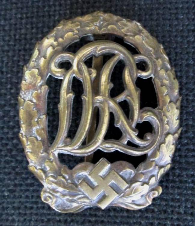 ´Deutsches Reichssportabzeichen in Bronze ´DRL´ mit Hakenkreuz´. Veniva concesso dalla Associazione per l´Educazione Fisica del III Reich (´Deutscher Reichbund fur Leibesubungen´).