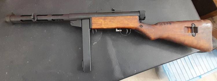 RARA PISTOLA MITRAGLIATRICE FINLANDESE SUOMI MOD. KP.31. ALL´INIZIO DEL ´42 FU INTRODOTTO UNO SPENGIFIAMMA PER STABILIZZARE IL TIRO E FU DENOMINATO KP.31/42.