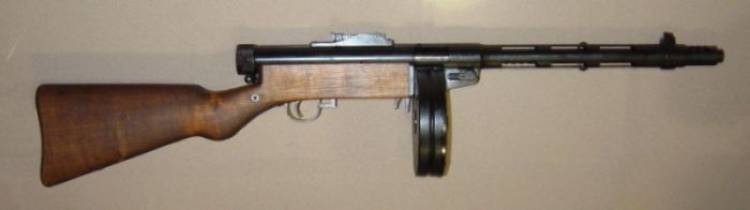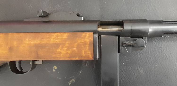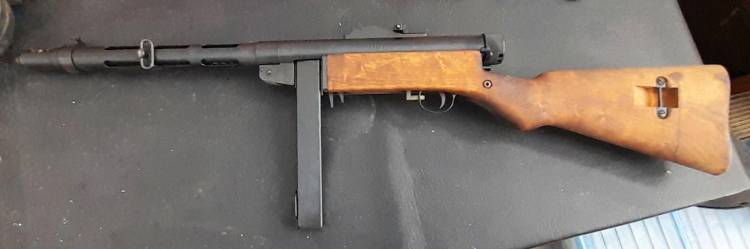 RARA PISTOLA MITRAGLIATRICE FINLANDESE SUOMI MOD. KP-31/42. ALL´INIZIO DEL ´42 FU INTRODOTTO UNO SPENGIFIAMMA PER STABILIZZARE IL TIPO SUL PRECEDENTE SUOMI KP-31.