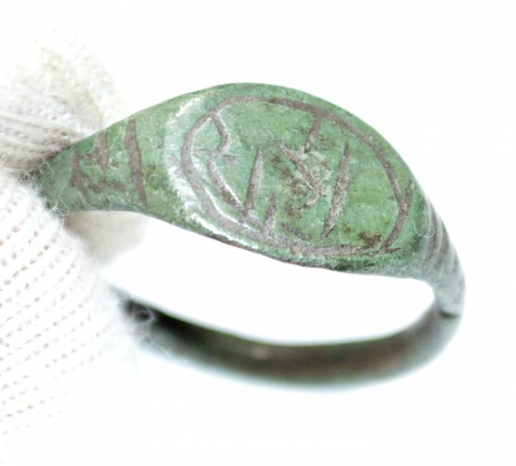 Anello Vichingo in Bronzo con scritta Runica incisa sulla Lunetta - IX-XI sec. d.C. (52)