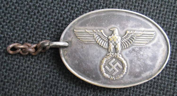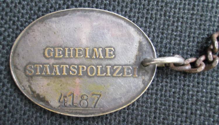 Polizei Dienstmarke Geheim Staat Polizei. Placchetta di riconoscimento di un appartenente alla Gestapo (Matr. N°4187). Veramente rara.