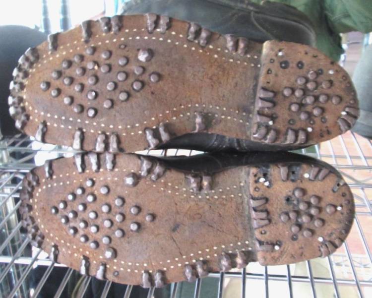 SCARPONI DA ALPINO TEDESCO DELLA II GM. II TIPO CON ALLACCIATURA A 7 FORI. CONDIZIONI MOLTO BUONE.