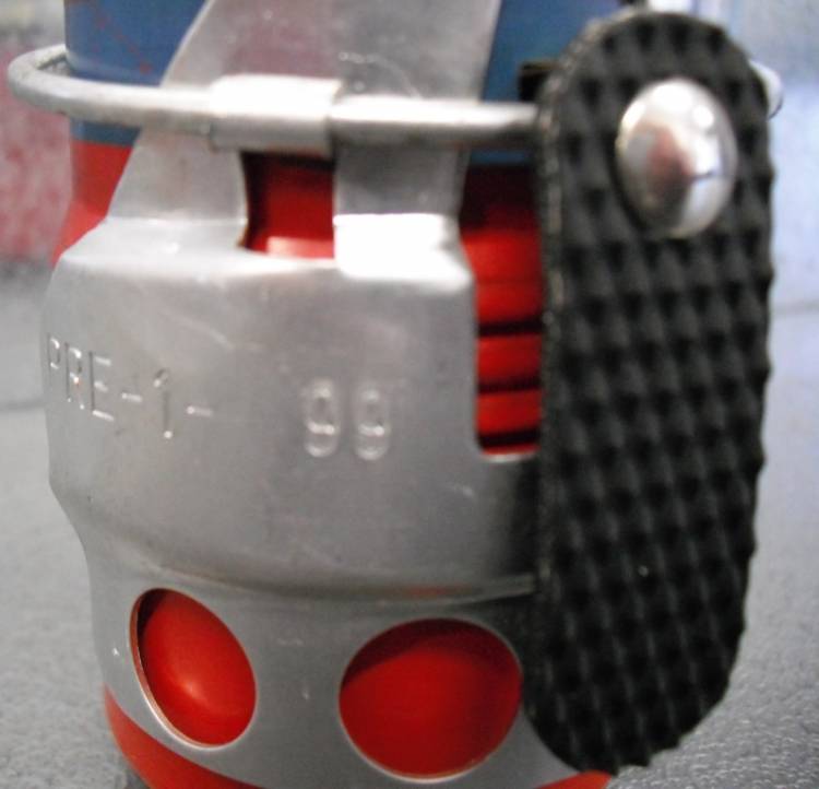 BOMBA A MANO ITALIANA S.R.C.M. (Societa´ Romana Costruzioni Meccaniche) mod.35 POST-BELLICA. LINGUETTA IN GOMMA. DATATA 1986. INERTE.