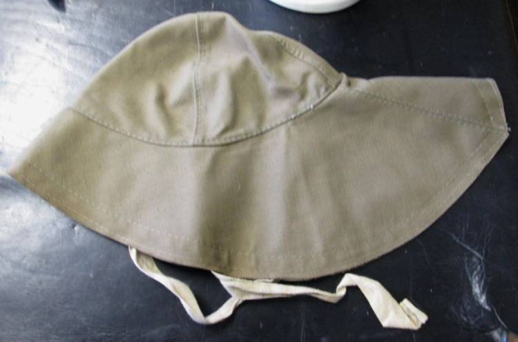 CAPPELLO ALLA NORVEGESE IN TELA GOMMATA MARRONE DA SOMMERGIBILISTA DELLA KM. TAGLIA E WaA PRODUTTORE. CONDIZIONI PARI AL NUOVO.