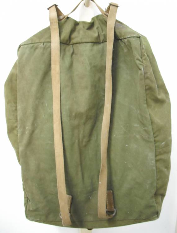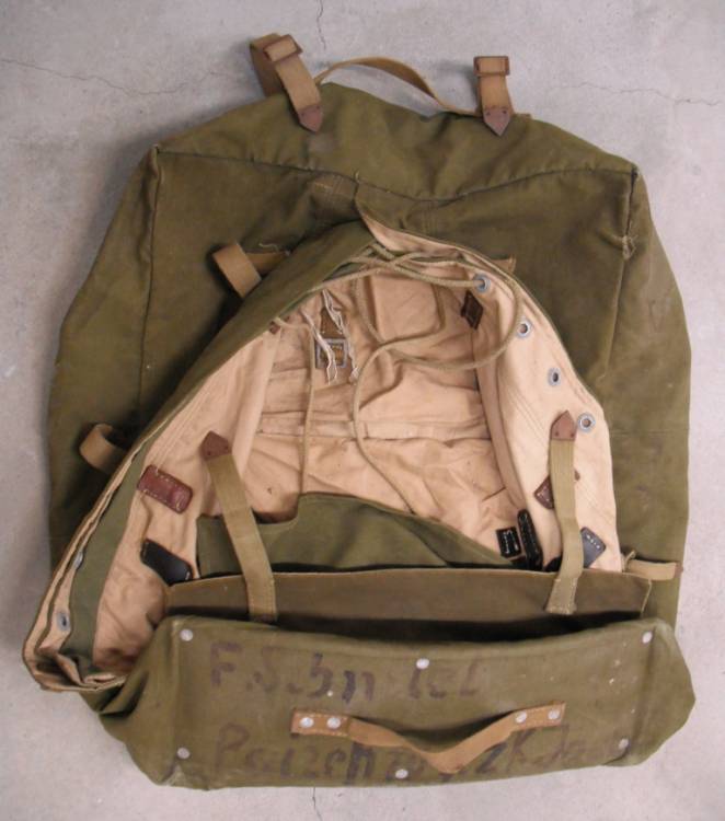 ZAINO VALIGIA DAK IN COTONE VERDE. CON CINGHIAGGIO IN CUOIO MARRONE. MODELLO WEHRMACHT, DEUTSCHE AFRIKA KORPS. CON ISCRIZIONI DEL PROPRIETARIO SUL FONDO. COMPLETO. IN OTTIME CONDIZIONI. ORIGINALE BELLICO TEDESCO.