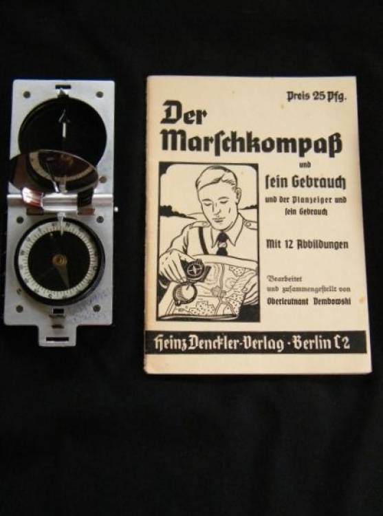 BUSSOLA Marschkompass - S DRP-d IN DOTAZIONE ALLA HITLER JUGEND ED ALLA JUNGVOLK. CONDIZIONI OTTIME. CON IL SUO MANUALE DI ISTRIZIONE ‘Der Marschkompass und sein Gebrauch’ PUBBLICATO NEL 1930 DA HEINZ DENCKLER.