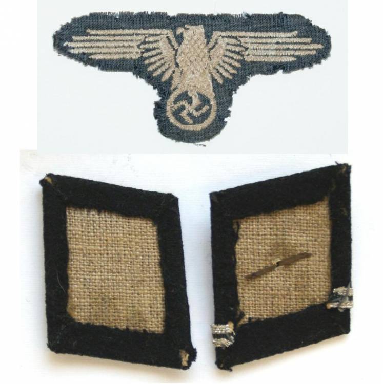MOSTRINE ED AQUILA DA SOTTUFFICIALE PROVENIENTI DA GIACCA WAFFEN SS DISTRUTTA DECENNI FA DA UNA LANERIA DI PRATO PER RICAVAVARNE TESSUTO (grrrrrrrrrrrr). EVIDENTI LE TRACCE DELLE CUCITURE. GRADO DI SERGENTE (SCARFUHRER).