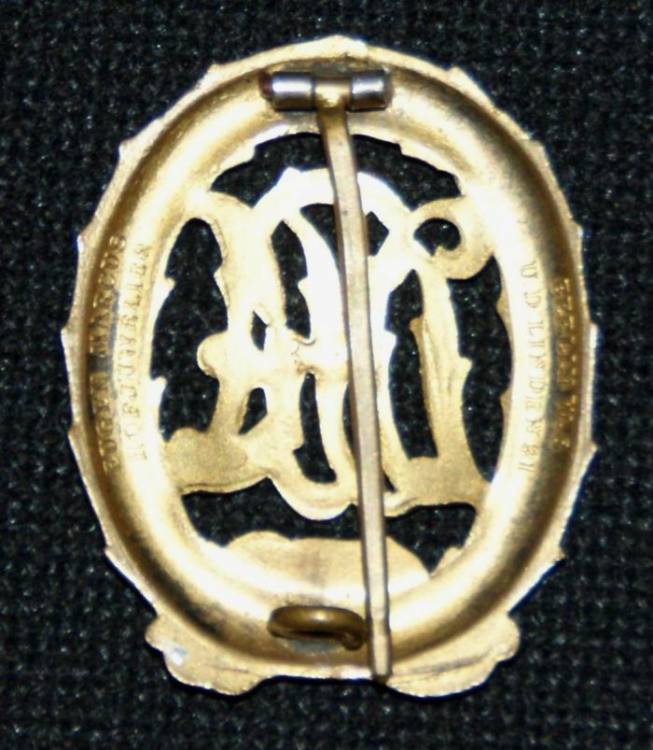 Reichssportabzeichen, 1 Modell ´DRA´ in Gold. Veniva concesso dalla Associazione per l´Educazione Fisica del III Reich (´Deutscher Reichbund fur Leibesubungen´).