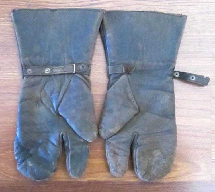 GUANTI A ´3 DITA´ USATI DA PIU´ CORPI (MITRAGLIERI, MOTOCICLISTI. ETC.) IN PELLE MARRONE CON IMBOTTITURA IN AGNELLO.