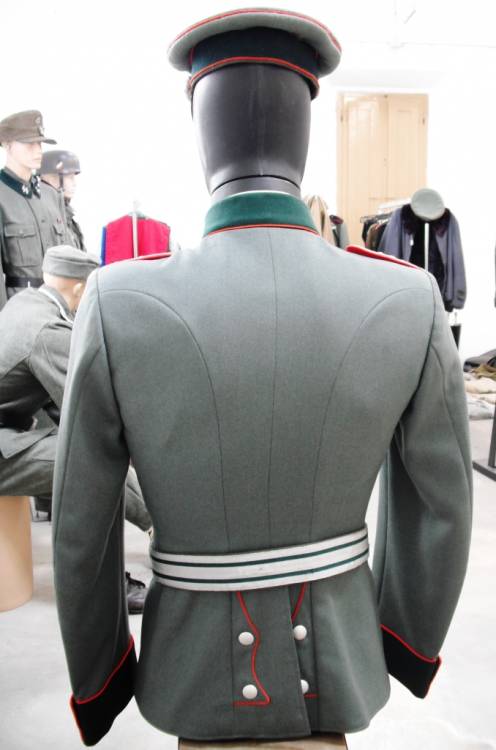 DA PARATA/LIBERA USCITA PER UFFICIALE HEER SPECIALITA´ ARTIGLIERIA. GRADO HAUPTMANN(CAPITANO). COMPOSTO DA GIACCA WAFFENROCK COMPLETA DI MOSTREGGIATURA. KRAGENBINDE (COLLETTO RIGIDO) BIANCO CON MISURA E ISCRIZIONI STAMPATE. AQUILA HEER MODELLO DA UFFICIALE RICAMATA IN CANOTTIGLIA ARGENTO. SUL LATO FRONTALE SINISTRO SONO PRESENTI LE TIPICHE ASOLE PER L´APPOSIZIONE DELLE DECORAZIONI (IN VENDITA A PARTE). NASTRO PER LA CONCESSIONE DELLA CROCE DI FERRO DI II CLASSE CUCITO ALLA TERZA ASOLA. SCHIRMMUTZE COMPLETO. CINTURONE IN BROCCATO E CANOTTIGLIA ARGENTO CON FIBBIA DA UFFICIALE CIRCOLARE. SCIABOLA DA UFFICIALE COMPLETA DI FODERO CON LAMA MARCATA "PUMA SOLINGHEN" DA UN LATO E "N° 3" SULL´ALTRO, AQUILA HEER A RILIEVO SUL GUARDAMANO, CARTIGLIO PER INCISIONE PERSONALIZZATA DEL PROPRIETARIO, VUOTO, SUL LATO OPPOSTO. CONDIZIONI ECCELLENTI.