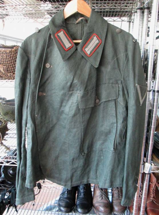 BELLISSIMO GIACCHINO M.43 SEMOVENTI IN DRILLICH COMPLETO DI AQUILA, MOSTRINE REGOLAMENTARI (IN DRILLICH) E GRADO SULLA MANICA, CUCITI IN ORIGINE. MARCHI. DISPONIBILI ULTERIORI FOTO.