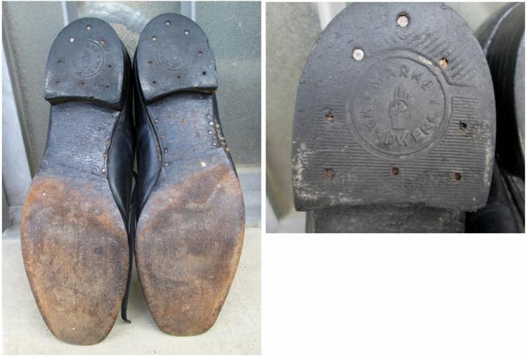 RARE SCARPE BASSE DELLA WH PER UNIFORME DA LIBERA USCITA O WAFFENROCK. MARCATE NEL TACCO. ANCORA QUALCHE CHIODINO ORIGINALE IN LEGNO.