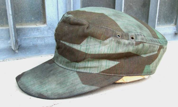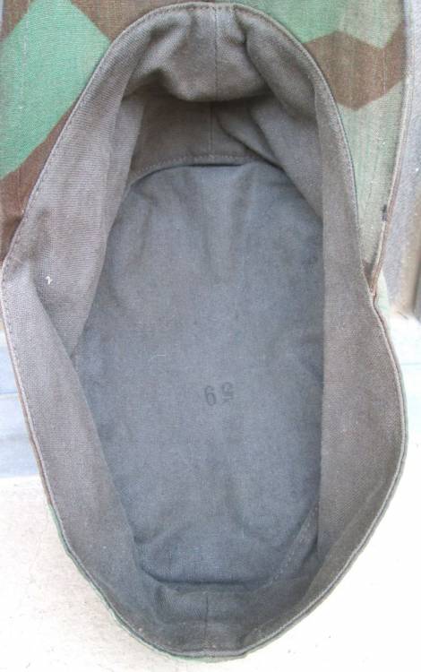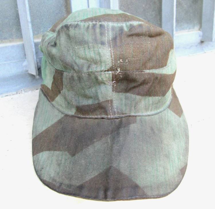 BERRETTO MIMETICO A SCHEGGE PER COMBATTENTI A TERRA DELLA LW (FELDDIVISIONEN). EVIDENTI TRACCE DELL´AQUILA ANTERIORE. TELA MIMETICA DEL TIPO PER I GIACCONI A DUE TASCHE FD (NO ZELTBAHN !!). TAGLIA: 59.