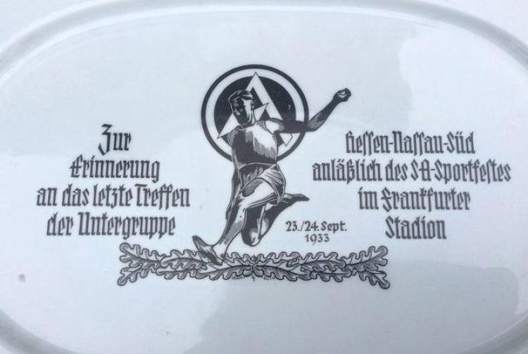 BELLISSIMO VASSOIO IN PORCELLANA COMMEMORATIVO DEL RADUNO SPORTIVO DELLE ´SA´ (´SA TREFFEN´) DEL 1933. MARCA DEL FABBRICANTE NEL SOTTO. CONDIZIONI PERFETTE.