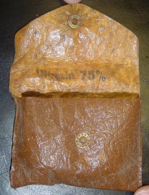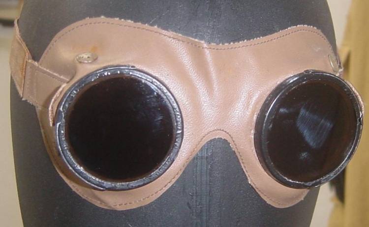 OCCHIALI MULTIUSO LENTI OSCURATE AL 75%. IN SIMIL-PELLE MARRONE CHIARO. COMPLETI DI CUSTODIA ORIGINALE IN CARTA PRESSATA, MARCATA ALL´INTERNO CON TIMBRO "ULTRASIN 75%". RINVENUTI IN SCATOLA INTERA, COMPLETA, CON TARGHETTA DI PRODUZIONE IN CARTONCINO 1942. CONDIZIONI PARI AL NUOVO.