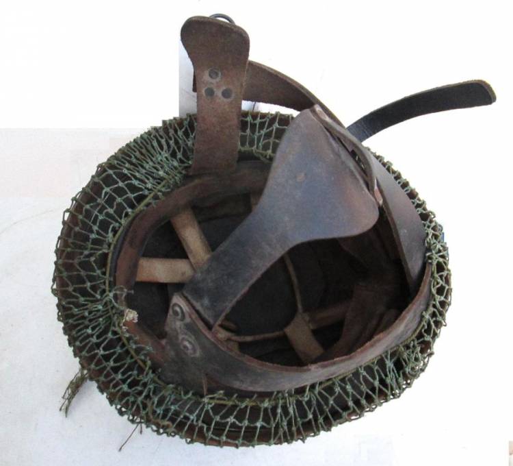 ELMETTO PARACADUTISTI INGLESI Mod.MKI (2° Mod.) COMPLETO DI IMBOTTITURA (´WPG - 1943´), SOGGOLO IN CUOIO E RETINA. CONDIZIONI MOLTO BUONE. MAI TOCCATO.