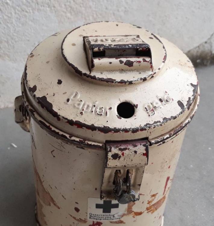 SALVADANAIO IN METALLO DELLA ROTE KREUZ DELLA REGIONE AUSTRIACA DELLA STIRIA. VENIVANO USATI PER LA RACCOLTA FONDI DELLA CROCE ROSSA O DELLA HITLER JUGEND. CONSERVA ANCORA IL SIGILLO IN PIOMBO. CONDIZIONI MOLTO BUONE.