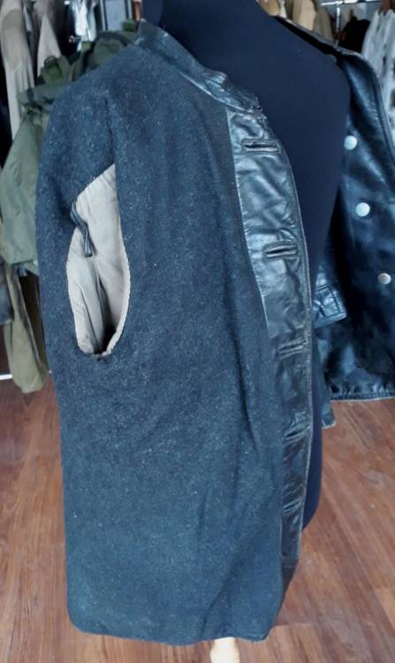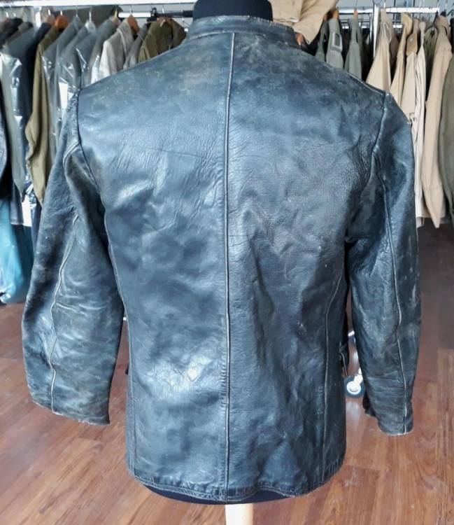 GIACCONE IN PELLE NERA APPARTENUTO AD UN UFFICIALE DELLE WAFFEN SS 12^ PANZER DIVISION ìHITLER JUGEND´ IMPEGNATO NEI COMBATTIMENTI NELLE ARDENNE. IL GIACCONE, INSIEME AI PANTALONI (3337) ED ALLA BUSTINA (3309), E´ STATO TROVATO A PRATO NEGLI ANNI ´90 DALL´AMICO GIANCARLO ERCOLI. CONDIZIONI MOILTO BUONE.
