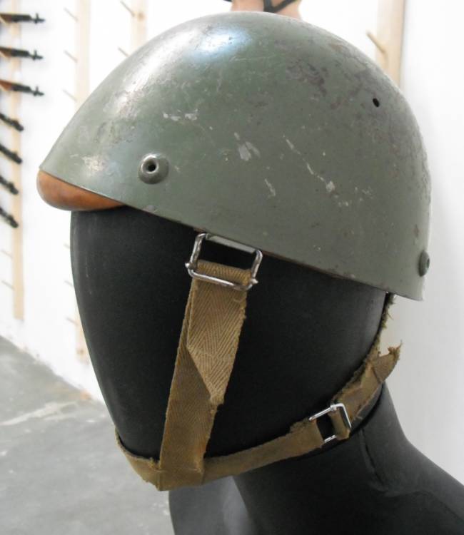 ELMETTO mod.59 PER TRUPPE PARACADUTISTE DELL´ESERCITO ITALIANO. MODELLO UTILIZZATO DAL 1959 FINO AGLI ANNI ´90. VERNICE VERDE OLIVA ORIGINALE. COMPLETO DI INTERNO TAGLIA 56 CON PARANASO E CINGHIAGGIO IN CANAPA COLOR CACHI. BUONE CONDIZIONI. COMPLETO DI TELINO MIMETICO E RETE.