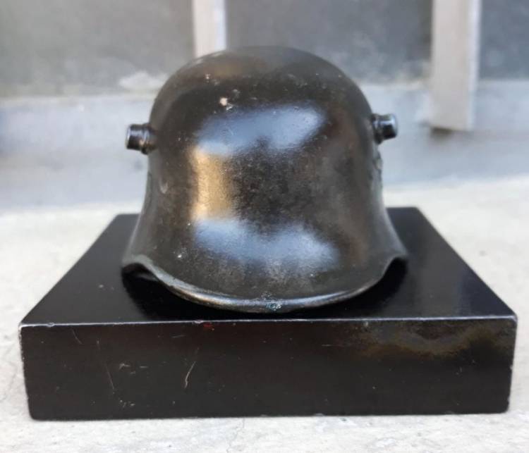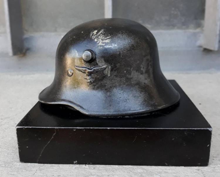 ELMO IN KRIEGSMETALL. BASAMENTO IN PIETRA. CONDIZIONI MOLTO BUONE.