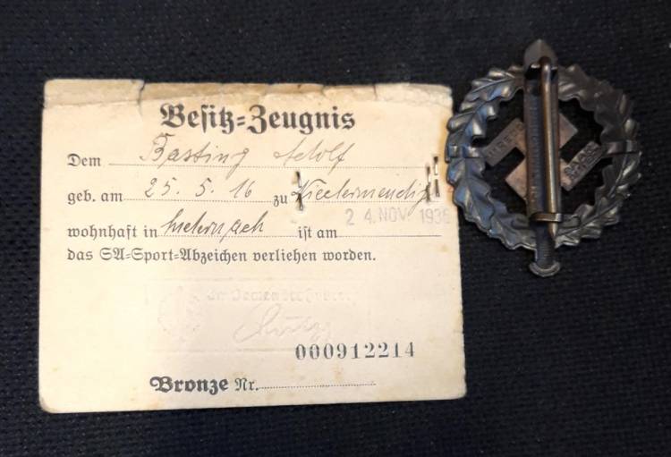 SA SPORTABZEICHEN IN BRONZE + ATTESTATO.