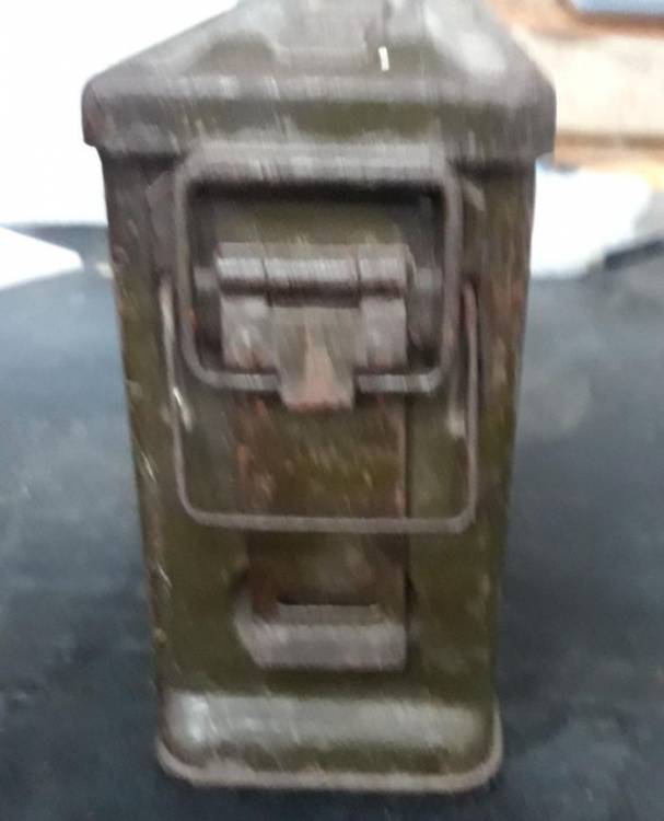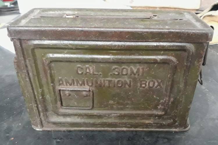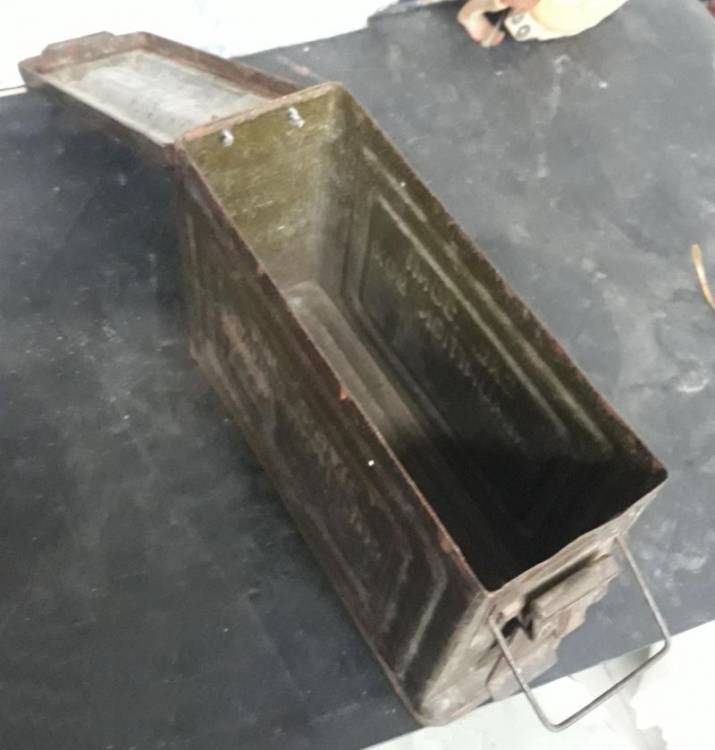 CASSETTA PORTAMUNIZIONI x MITRAGLIATRICE BROWNING 1919 A4. POTEVA CONTENERE NASTRO DA 250 COLPI IN 30.06. CONDIZIONI DISCRETE.