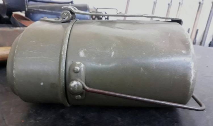 GAVETTA IN ALLUMINIO DELL´ESERCITO SVIZZERO. COLORAZIONE VERDE. CONDIZIONI MOLTO BUONE.