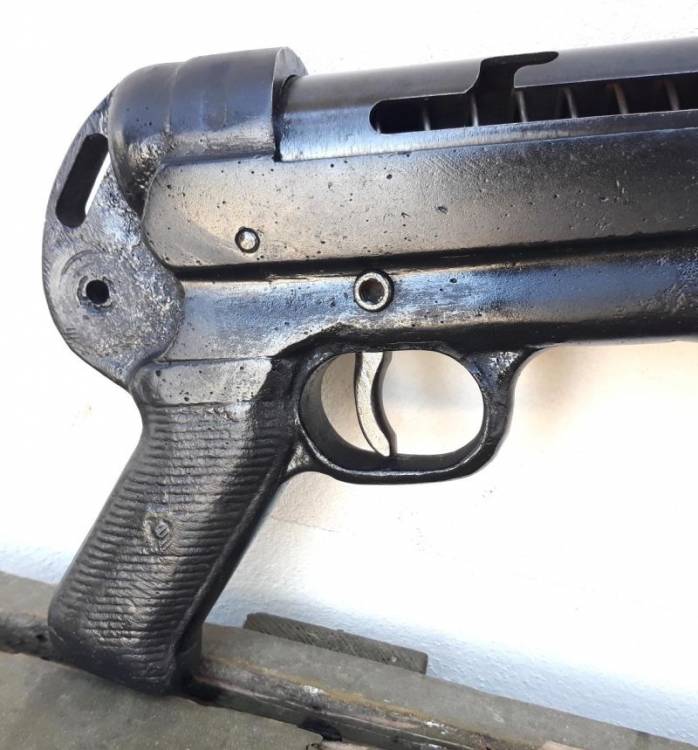 RARO CLONE DI MP.40 PRODOTTO IN JUGOSLAVIA PER GLI UOMINI DELLA RESISTENZA. IMPUGNATURA IN FUSIONE DI ALLUMINIO ED OTTURATORE DERIVATO DA QUELLO DELLO STEN. CAL. 9x19.
