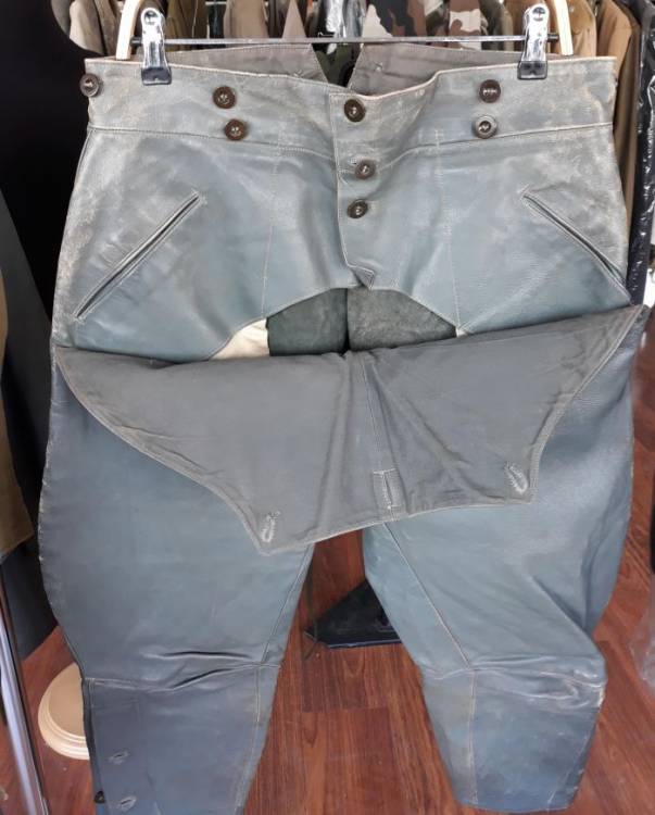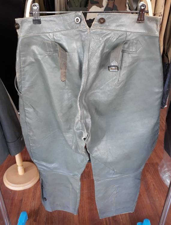 BELLISSIMI E RARI PANTALONI CON PATTA ANTERIORE IN PELLE GRIGIA DA UFF. DELLA KM SOMMERGIBILISTI.
