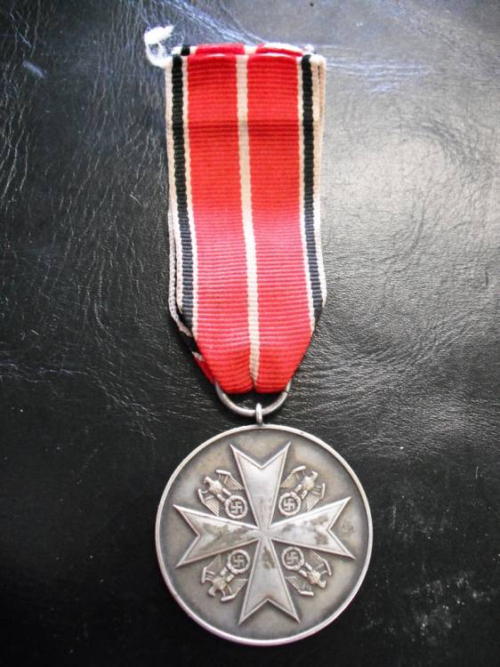 MEDAGLIA AL MERITO IN ARGENTO DELL´ORDINE DELL´AQUILA TEDESCA. CONSEGNATA AGLI STRANIERI DISTINTISI PER MERITI PARTICOLARI VERSO IL III REICH TEDESCO. VERSIONE SENZA SPADE, DISTRIBUITA IN GENERE PER MERITI DIPLOMATICI. MOLTE PERSONALITA´ E UFFICIALI SUPERIORI ITALIANI NE FURONO ISIGNITI. COMPLETA DI NASTRO D´EPOCA, OTTIME CONDIZIONI.