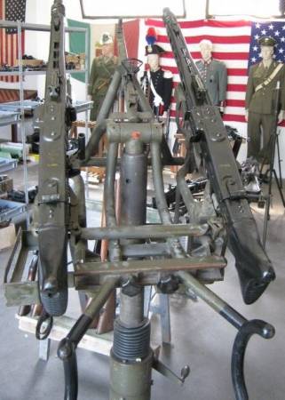 BUONE CONDIZIONI. INERTIZZAZIONE ANTE 2002 (SCARRELLANTI). SU AFFUSTO ANTIAEREO TEDESCO POST-BELLICO. LE BINATE VENIVANO UTILIZZATE SENZA CALCIATURE AVENDO I SUPPORTI SEMICIRCOLARI PER LE SPALLE. L´INSIEME E´ UNA SOLUZIONE PIU´ CHE ACCETTABILE IN MANCANZA DELLE PIU´ CONSONE MITRAGLIATRICI DELLA BW MG.3.