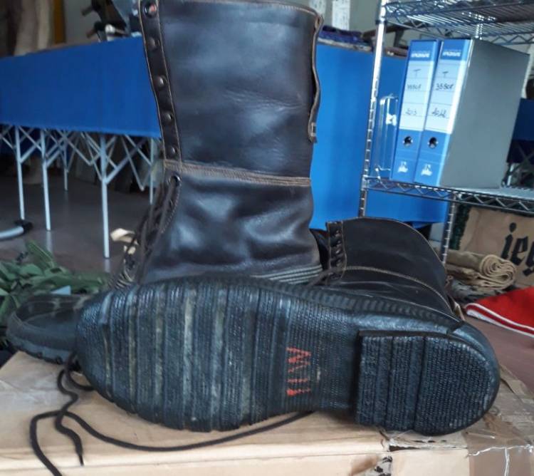 SCARPONI AMERICANI DA MONTAGNA ‘SHOE PACS‘ MARCATI 1944. PARI AL NUOVO. FANNO PARTE DEL MANICHICO COMPLETO DELLA ´RED BULL´ APPRTENUTO ALLA COLLEZIONE PALLONE DI CASSINO. 400,00