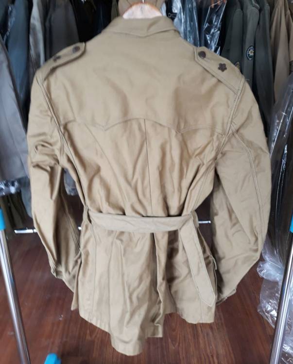 SPLENDIDA SAHARIANA DEL REI IN COTONE COLOR SABBIA CON GRADI DA TENENTE. STESSO MODELLO DELLA TRUPPA. CONDIZIONI PARI AL NUOVO.