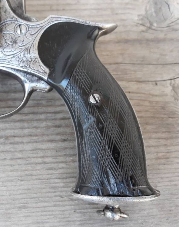 REVOLVER A SPILLO INGLESE CON CANNA A DUE ORDINI ED IMPUGNATURA IN EBANO.